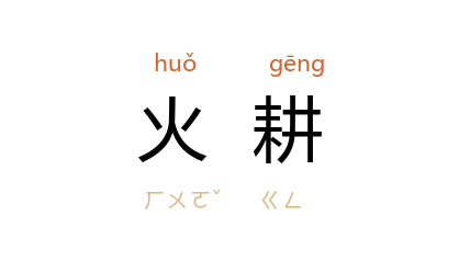 ⒈  用火烧除草木,并以其灰烬充作肥料,以利种植的耕作方式。
