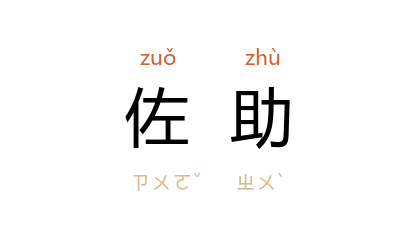 引汉 桓宽 《盐铁论·本议》:“蕃货长财,以佐助边费。”《后汉书·皇甫规传》:“以所习地形兵埶,佐助诸军。”陈登科 《赤龙与丹凤》十三:“韦克 道:‘伯父年迈,你要多多佐助老人家。’”