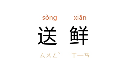 ⒈ 赠送应时的新鲜食品。如水果、鱼虾、野味之类。
