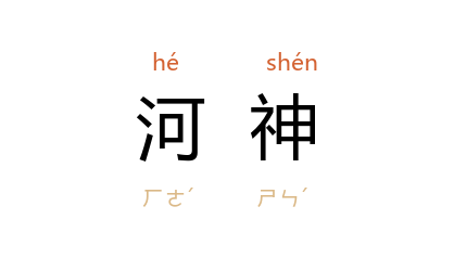 ⒈ 想象中统辖一条河流而具有河流监护威力的神灵。