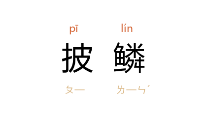 引唐 皇甫澈 《赋四相诗·中书令锺绍京》:“谋猷叶圣朝,披鳞奋英节。”明 袁宗道 《封知县刘公墓志铭》:“夕郎矫矫,名重披鳞。”明 蔡汝楠 《创建大复何先生祠记》:“披鳞蹈鑊,朝士夺色。”