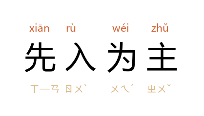 ⒈ 将最早听见的说法当做是正确的,而不愿做任何的改变。语本表示最早听到的话容易在心中留下深刻的主观观念,而难以接受其他说法。