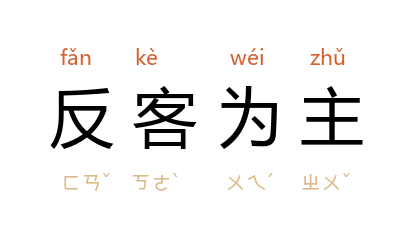 ⒈ 客人反倒成了主人。比喻变被动的为主动的或变次要的为主要的。也作「反客作主」。