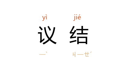 引清 昭槤 《啸亭杂录·内务府定制》:“凡审讞内府所属人犯,罪在杖一百以下者,本司依律议结。”中国近代史资料丛刊《辛亥革命·人民反清斗争资料·四川民变档案》:“被害良民妥为安抚,被毁教堂查明妥速议结,并将办理情形随时电奏。”