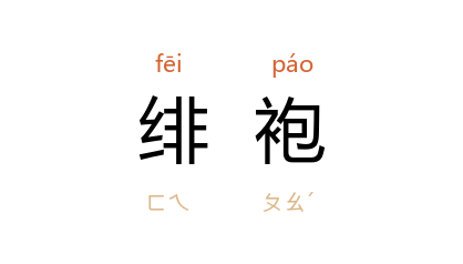 引《宋史·仪卫志二》:“太宗 太平兴国 初,增主輦二十四人……奉珍珠、七寳、翠毛华树二人,衣緋袍。”明 王玉峰 《焚香记·看榜》:“宫花斜倚乌帽偏,緋袍半軃压锦韉,身世 蓬 瀛,天上人间。”《镜花缘》第九九回:“细细看去,士农工商,三教九流,无一不有。也有緋袍象简在那里伸手的,也有胥吏隶役在那里勒索的。”