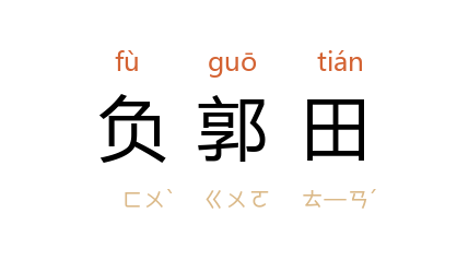 后因以“负郭田”为典。亦泛指田。 清 朱彝尊 《送十一叔还里即作豫章之游》诗之一:“觥筹尚记投賔辖,薑蔗都无负郭田。”