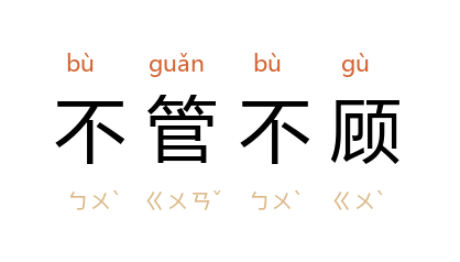⒈ 不照管。如:他对家里的事不管不顾,一心想着工作。形容人莽撞。如:这人不管不顾地冲进门来,大家吓了一跳。