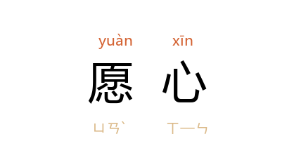 1. 发下的心愿。 元 杨暹 《西游记》第三本第十一出:“我的愿心,只求得道的人,我吃一百箇。诸神不能及,恰吃得九箇,少我的多哩。”