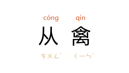 引《易·屯》:“即鹿无虞,以从禽也。”《三国志·魏志·栈潜传》:“若逸于游田,晨出昬归,以一日从禽之娱,而忘无垠之衅,愚窃惑之。”唐 张正元 《临川羡鱼》诗:“不应同逐鹿,詎肯比从禽。”旧题 宋 苏轼 《艾子杂说》:“艾子 有从禽之僻,畜一猎犬,甚能搏兔。”明 冯梦龙 《智囊补·上智·严求》:“然羣校多从禽,聚饮近野,或骚扰民庶。”
