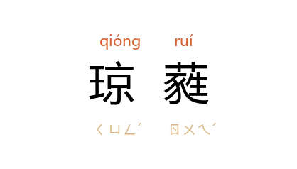 引《文选·陆机<拟东城一何高>诗》:“京洛 多妖丽,玉颜侔琼蕤。”张铣 注:“琼蕤,玉花也。”唐 王维 《荐福寺光师房花药诗序》:“琼蕤滋蔓,侵迴阶而欲上;寳庭尽芜,当露井而不合。”明 刘基 《郁离子·东陵侯》:“是故碎瓦頽垣,昔日之歌楼舞馆也;荒榛断梗,昔日之琼蕤玉树也。”