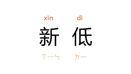 ⒈ 数量、水平等下降出现的新的低点:黄金价格近来创历史新低。