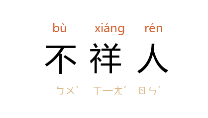 引巫臣 曰:‘是不祥人也。是夭 子蛮,杀 御叔,弑 灵侯,戮 夏南,出 孔、仪 、丧 陈国,何不祥如是?’”清 刘大櫆 《钱节妇传赞》:“方其诈报孝则已死,乃所谓不祥人矣。”