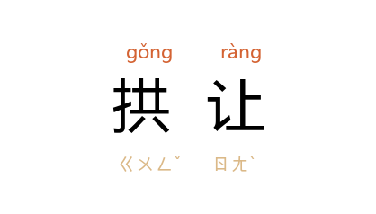 ⒈ 拱手相让:劳动成果怎能拱让他人?