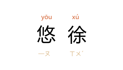 引郁达夫 《一个人在途上》:“受苦的时间,的确脱煞过去得太悠徐,今年的夏季,只是悲叹的连续。”周立波 《山乡巨变》上二:“间或,也有啄木鸟,用它的硬嘴巴敲得空树干子梆梆地发出悠徐、间隔均匀的声响。”