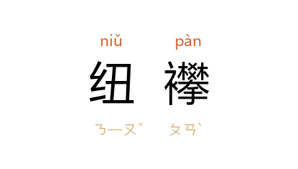 引清 顾张思 《土风录》卷三:“衣纽之牝者曰纽襻。”萧乾 《草原即景》:“跑在最前边的一个穿着一身藏青长褂,上襟镶着一排四个杏黄色的纽绊。”