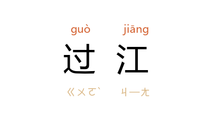 ⒈ 过长江。特指西晋和北宋王室东渡事。
