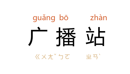 ⒈ 我国有线广播的基层组织。是广播电台的辅助和补充。县、区、乡以及机关、部队、学校等一般均有设置。某些中、小城市也有广播站。它除有选择地转播各地广播电台节目外,还可根据本地区、本部门的特点,灵活地安排节目,迅速、及时地播送消息。