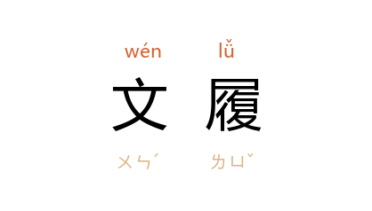 引汉 刘向 《说苑·反质》:“夫 卫国 虽贫,岂无文履,一奇以易十稷之绣哉。”三国 魏 曹植 《洛神赋》:“践远游之文履,曳雾綃之轻裾。”唐 元稹 《莺莺传》:“珠莹光文履,花明隐绣龙。”明 何景明 《寿母赋》:“荐五丝之文履兮,举九醖之芬觴。”