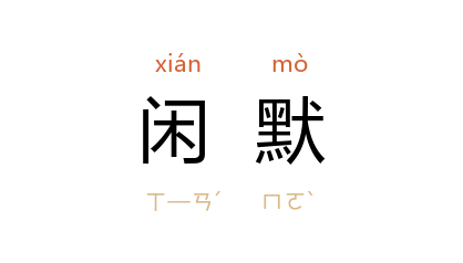 引《世说新语·赏誉》“张华 见 褚陶” 刘孝标 注引《褚氏家传》:“﹝ 褚陶 ﹞弱不好弄,清谈闲默,以坟典自娱。”《宋书·袁粲传》:“粲 闲默寡言,不肯当事,主书每往諮决,或高咏对之,时立一意,则众莫能改。”