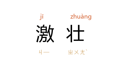 引宋 罗大经 《鹤林玉露》卷十六:“尔风裁峭洁,志概激壮。”《明史·王文传》:“文 力辩曰:‘召亲王须用金牌信符,遣人必有马牌,内府兵部可验也。’辞气激壮。”清 朱仕琇 《与林穆庵书》:“彼其抚时感事,慷慨自数其齿,其言激壮,有足悲者。”