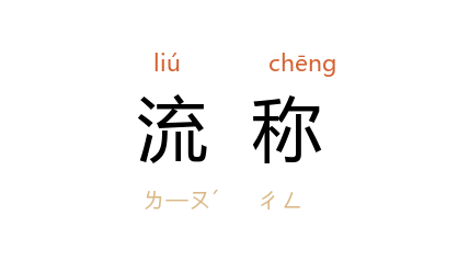 引汉 应劭 《风俗通·穷通·司徒颍川韩演》:“明府所在流称,今以公徵,往便原除,不宜深入以介意。”三国 魏 曹丕 《答许芝上代汉图谶令》:“若夫 唐尧 舜 禹 之蹟,皆以圣质茂德处之,故能上和灵祇,下寧万姓,流称今日。”