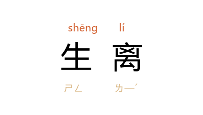 引《楚辞·九辩》:“重无怨而生离兮,中结軫而增伤。”晋 葛洪 《抱朴子·用刑》:“暴兵百万,动数十年,天下有生离之哀,家户怀怨旷之嘆。”元 马致远 《黄粱梦》第一折:“想为人在世,最苦是生离。”郭沫若 《蔡文姬》第四幕第一场:“她是舍不得和她的儿女生离,所以才那样悲哀。”