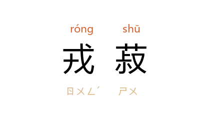 ⒉ 山戎所种植的一种豆科植物。大豆。《管子·戒》:“北伐山戎,出冬葱与戎菽,布之天下。”《诗·大雅·生民》:“蓺之荏菽”毛传:“荏菽,戎菽也。”郑玄笺:“戎菽,大豆也。”一说为胡豆,蚕豆。《尔雅·释草》:“戎叔,谓之荏菽。”郭璞注:“即胡豆也。”或谓戎菽、胡豆皆豌豆别名。见明李时珍《本草纲目劐·谷三·豌豆》。