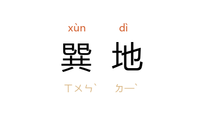 引《水浒传》第六一回:“吴用 再把铁算了搭了一回,便回员外道:‘只除非去东南方巽地上,一千里之外,方可免此大难。’”《西游记》第六八回:“﹝ 孙悟空 ﹞朝着巽地上吸口仙气吹来,立起一陈旋风,将人都吹散。”