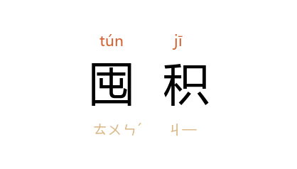 ⒈ 积存物品。也作「屯积」。
