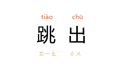 清 平步青 《霞外攟屑·论文下·跳出》:“褚遂良 《圣教序》:‘我皇福臻。’‘我’字跳出写。 欧阳询 书《醴泉铭》:‘我后固怀撝挹’又‘我后夕惕’亦‘我’字跳出写。盖‘我’者亲戴之词,非臣下自谓也。今人‘我皇、我后’,皆於‘皇’字、‘后’字跳出,与古异矣。”