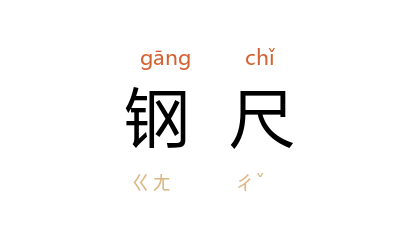 ⒈ 用不锈钢制成的尺。最小刻度为零点五公厘,可直接度量工作物的长短、厚薄,使用时必须水平或垂直放置,视线与尺面成垂直方向,以避免读数的误差。