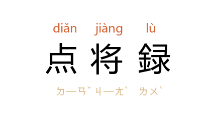 ⒈ 明代有用水浒传罡煞星名配东林诸人,以供谈谑的,称为「点将录」。后喻指记载菁英的名册。