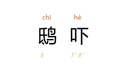 ⒈ 《庄子·秋水》:“惠子相梁……庄子往见之,曰:'南方有鸟,其名为鹓鶵,子知之乎?夫鹓鶵,发于南海而飞于北海,非梧桐不止,非练实不食,非醴泉不饮。于是鸱得腐鼠,鹓鶵过之,仰而视之曰:”吓!“今子欲以子之梁国而吓我邪?'”汉桓宽《盐铁论·毁学》:“今公卿以其富贵笑儒者,为之常行,得无若太山鸱吓鹓鶵乎?”后世即以“鸱吓”比喻恐人夺取己物而发出的怒声。