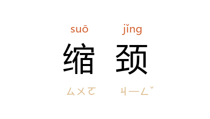 ⒈ 缩其颈项。 《史记·龟策列传褚少孙论》:“望见 元王,延颈而前,三步而止,缩颈而却,復其故处。