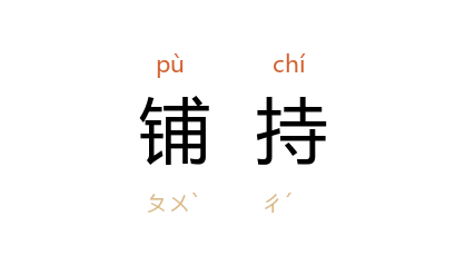 引元 关汉卿 《调风月》第二折:“剪了靴簷,染了鞋面做铺持。”元 马致远 《任风子》第三折:“这手帕中做布捻,好做铺尺。”元 无名氏 《杀狗劝夫》第二折:“将一领破布衫攞做了铺迟。”