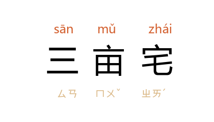 ⒈ 后以“三亩宅”指栖身之地。