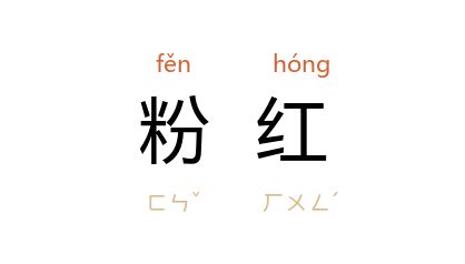 引宋 苏轼 《戏作鮰鱼一绝》:“粉红石首仍无骨,雪白河豚不药人。”《红楼梦》第八九回:“宝玉 拿了一幅泥金角花的粉红笺出来。”周立波 《民兵》:“三月下旬,时晴时雨,桃树上的粉红的花朵和翡青的嫩叶常常滴落着水珠。”