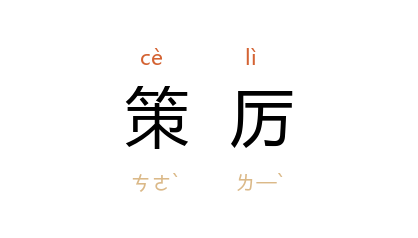 引《后汉书·第五伦传》:“素性駑怯,位尊爵重,拘迫大义,思自策厉,虽遭百死,不敢择地,又况亲遇危言之世哉!”宋 苏轼 《上监司谢礼上启》:“勉知策厉之勤,少答吹扬之赐。”明 宋濂 《无尽灯禅师行业碑铭》:“禪师一鉢自将,策厉学徒於寂寞之滨。”清 刘大櫆 《王载扬诗序》:“王 君 载扬 不屑为科举之学,一意肆力於歌诗,而性又疏放,不能深自策厉,以趋于仕进之途。”