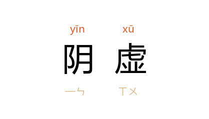 ⒈ 中医学名词。精血或津液亏损的病理现象。因精血和津液都属阴,故称“阴虚”。