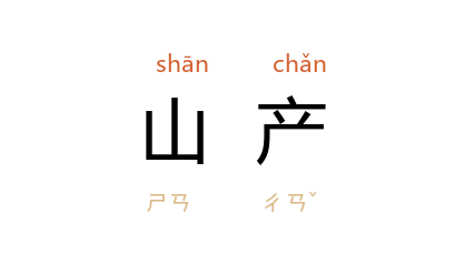 ⒈ 出产于山里的动植物的总称。或称以其为材料所制造的手工艺品。
