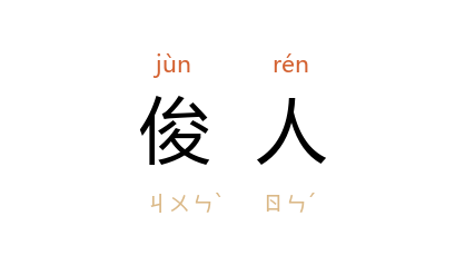 引《南史·王规传》:“王威明 风韵遒上,神峰标映,千里絶迹,百尺无枝,实俊人也。”唐 刘禹锡 《唐故衡州刺史吕君集纪》:“五行秀气,得之居多者为俊人。”清 方苞 《谢季方传》:“然先君子所交,皆 楚 越 遗老、乡邦俊人。”柳亚子 《呈谢老觉哉一律》:“落落 湖 湘 几俊人?怜他 黄 宋 早成尘。”
