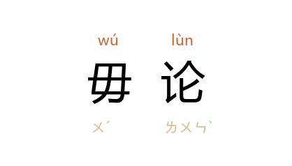 引清 章学诚 《文史通义·书<贯道堂文集>后》:“毋论所证古音确否,试问 高帝 讳‘邦’称‘国’,岂‘邦’‘国’古音同乎?”中国近代史资料丛刊《太平天囯·行军总要》:“毋论何人所有马匹,俱牵与能人骑坐。”《清史稿·刑法志二》:“流,遣毋论发配与否,俱应工作。”