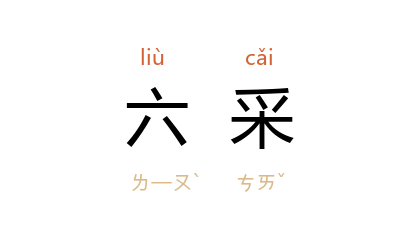 引《左传·昭公二十五年》:“为九文、六采、五章,以奉五色。”杜预 注:“画繢之事,杂用天地四方之色,青与白,赤与黑,玄与黄,皆相次,谓之六色。”按,《周礼·考工记·画繢》:“画繢之事杂五色,东方谓之青,南方谓之赤,西方谓之白,北方谓之黑,天谓之玄,地谓之黄。青与白相次也,赤与黑相次也,玄与黄相次也。”