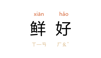 引汉 应劭 《风俗通·正失·王阳能铸黄金》:“《汉书》説:王阳 虽儒生,自寒贱,然好车马衣服,极为鲜好,而无金银文绣之物。”按,《汉书·王吉传》作“鲜明”。 宋 刘子翚 《怀旧歌》:“当时醉舞向花下,緑鬢朱颜各鲜好。”清 王士禛 《池北偶谈·谈异六·钓台》:“有大石板,下有一巨荷叶,尚鲜好。”