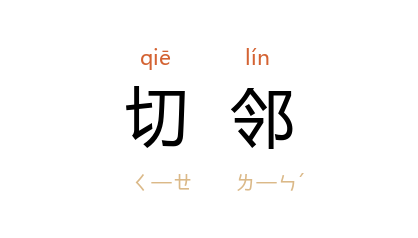 引宋·赵师秀〈徐孺子宅〉诗:「今识高眠处,沧波是切邻。」《金瓶梅·第一四回》:「切邻间不妨事。我去到那里看他有甚么话说。」