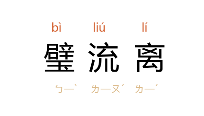 引《汉书·西域传上·罽宾国》:“罽宾 地平……(出)珠璣、珊瑚、虎魄、璧流离。”颜师古 注:“此盖自然之物,采泽光润,踰於众玉,其色不恆。”《宋书·符瑞志下》:“璧流离,王者不隐过则至。”章炳麟 《訄书·公言》:“取歧光之璧流离,蔽遮之於白日,而白者为七色,非璧流离之成之。日色固有七,不歧光则不见也。”