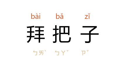 引《三侠五义·第三四回》:「这么样罢,咱们两个结盟,拜把子罢!」《文明小史·第七回》:「当下二人话到投机,傅知府便一直的陪著他,两人还要拜把子换帖。」