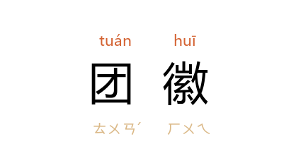 ⒈ 中国共产主义青年团的标志。上方为飘扬的团旗,左右各半为齿轮和麦穗,中间是光芒四照的太阳及写有“中国共青团”五字的绶带。象征着共青团在马列主义、毛泽东思想的光辉照耀下,团结各族青年,朝着党所指引的方向奋勇前进。