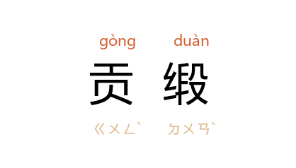 引鲁迅 《准风月谈·四库全书珍本》:“况且‘钦定’二字,至今也还有一点威光,‘御医’‘贡缎’,就是与众不同的意思。”田遨 《杨度外传·财神驾到》:“胖鼓鼓的 梁士诒,穿着古铜色洒花缎袍,青色贡缎花马褂,在主人陪同下走进大厅来。”