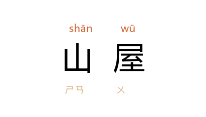引唐 皎然 《冬日山行过薛徵君》诗:“菜实縈小园,稻花遶山屋。”金 赵秉文 《赴宁化宿王道》诗:“山屋如鷄栅,才容卸马鞍。”明 李东阳 《寄庄定山》诗:“山屋到秋惊雨破,野舟经日任潮生。”